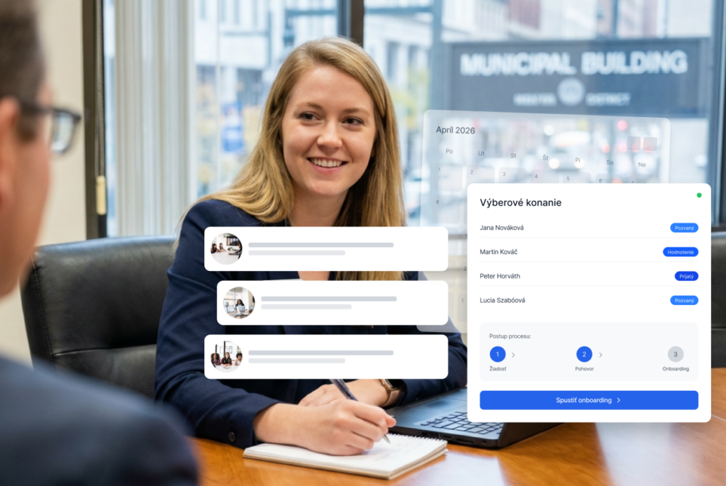 Nábor nových zamestnancov je na väčšine úradov stále rovnaký príbeh. Životopisy chodia na email. Každý člen komisie má vlastnú tabuľku s hodnoteniami. Termíny pohovorov sa koordinujú cez správy. Pozvánky sa posielajú ručne. A niekde na konci tohto procesu čaká nový zamestnanec na onboarding, ktorý tiež nikto poriadne nezorganizoval.